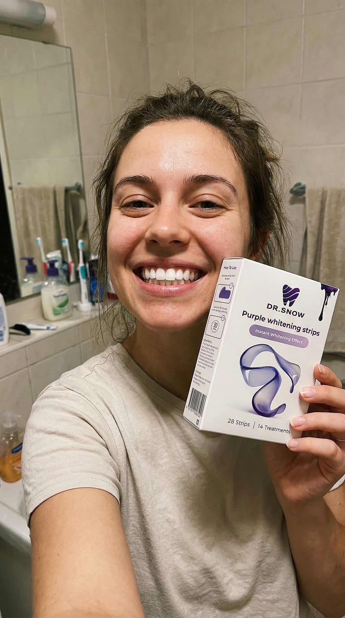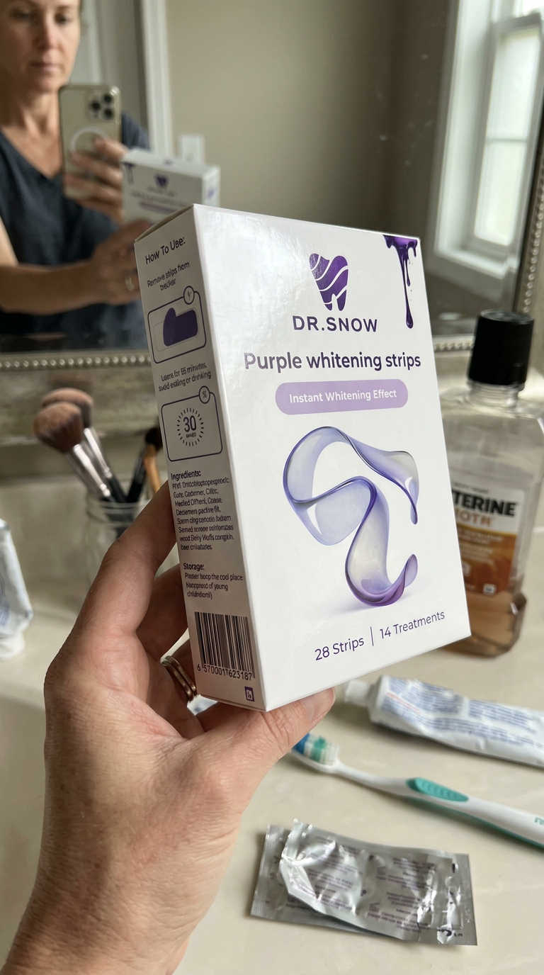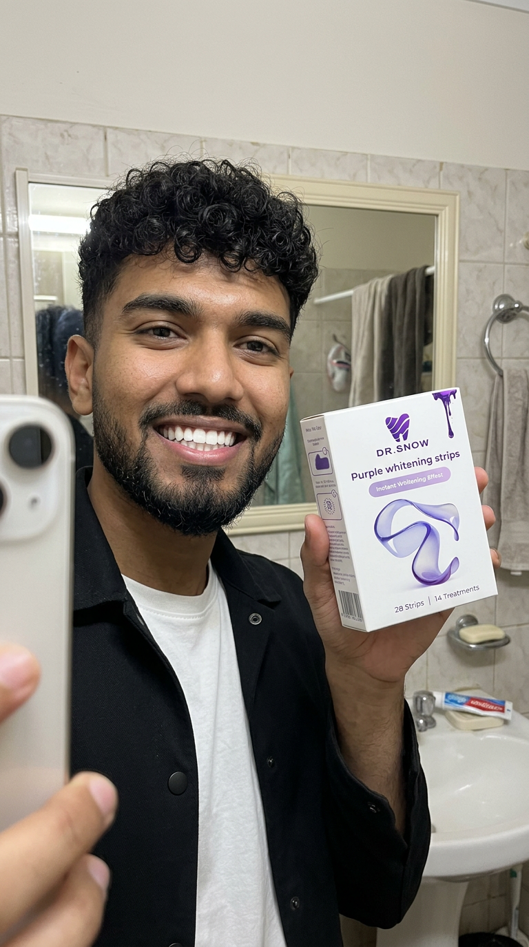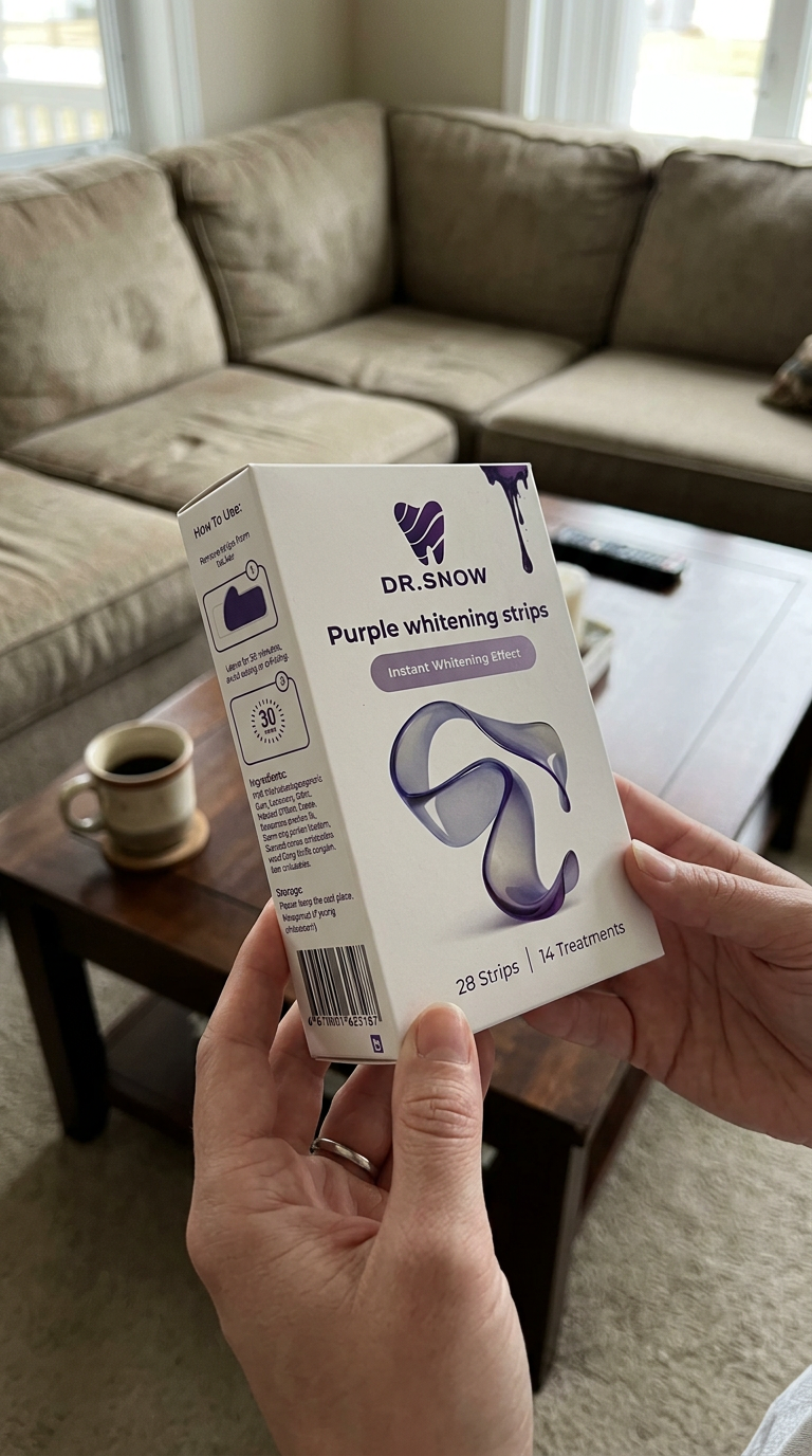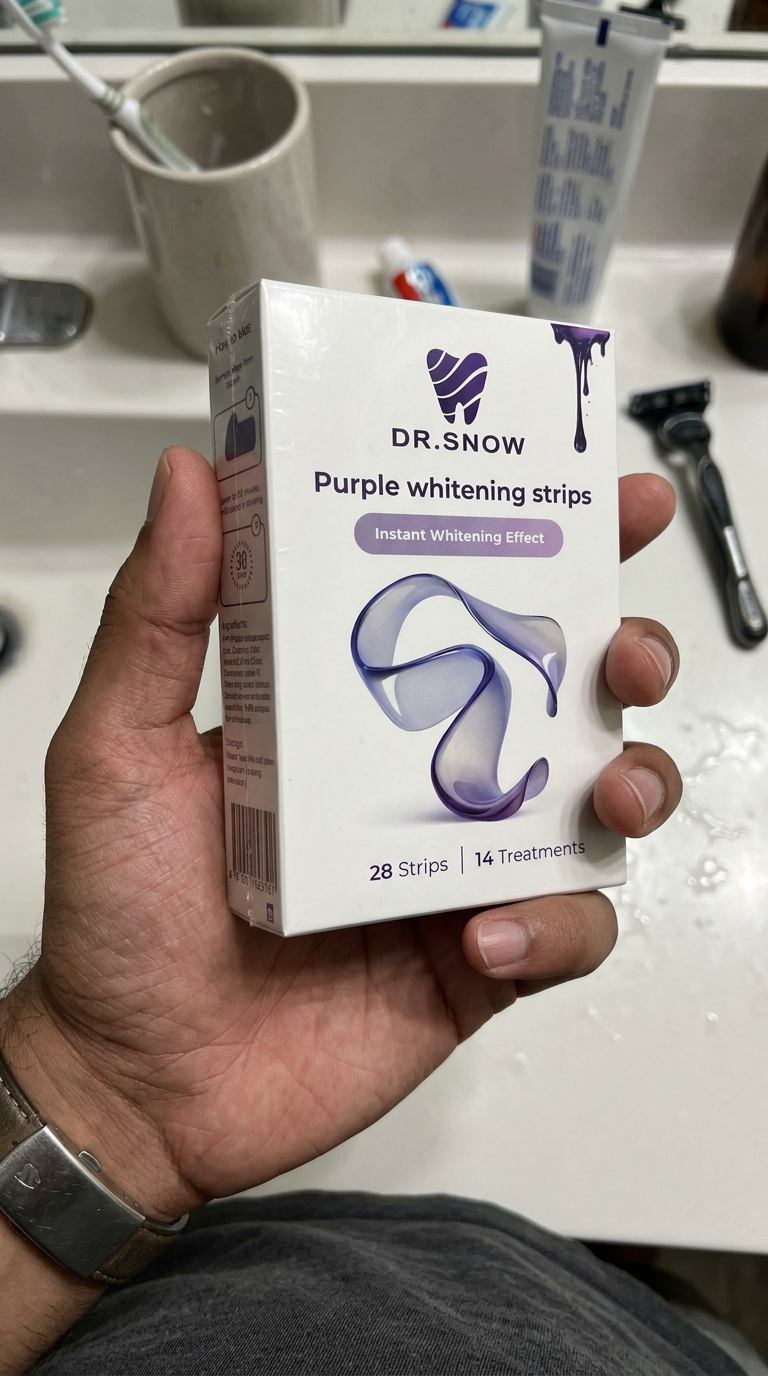 DR.SNOW V34 Purple Whitening Strips are designed to deliver visible brightening through instant colour correction combined with active stain-lifting technology.
